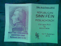 The check-in of delegates is at 9.30am each day and delegate/visitor admission cards will be available at the door of the Conference Hall provided RSF Head Office has been notified in advance of your request for same : all visitors must be vouched for by a member of Republican Sinn Féin. The Presidential Address will be delivered by An tUachtarán Des Dalton on Sunday at 12.15pm. It is intended that the Ard Fheis will end the Saturday session at 6.00pm and and will wrap-up at 4.30pm on Sunday , in between which a ballad session will be held (9pm Saturday night) in the Hotel venue. Also , the annual RSF National Private Members Draw will be held at the venue over that weekend (six prizes : 1st two 2013 All-Ireland tickets [one hurling and one football] plus €500 spending money/ 2nd €500/ 3rd €300/ 4th 19-inch flat screen TV-DVD combi unit/ 5th €50 voucher for Irish Freedom Press and 6th bodhrán - and RSF will also be holding a 650-ticket raffle that same weekend in a different venue!) and finally - Irish Republican Resistance Calendars for 2013 will be available at the Ard Fheis , priced at about a fiver each.