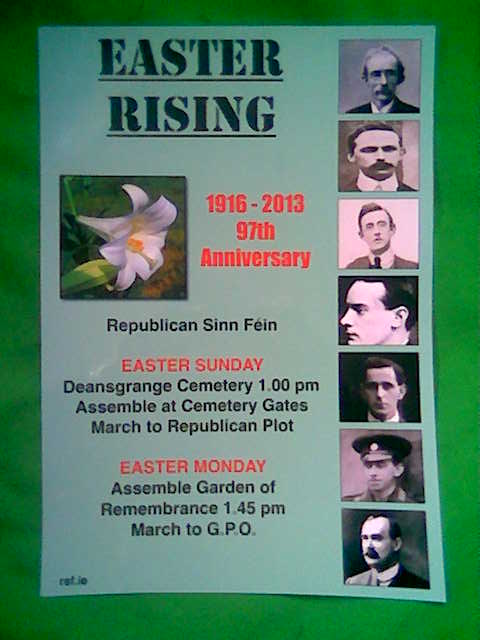To seek 'permission' and a written permit from those that played a major part in the deaths of the men and women you seek to 'honour' is, at best, politically perverse and, at worst, politically immature , and is an issue I have commented on before. To ensure you don't get fooled into contributing to a false 'Cause' and wearing a Free State-approved Easter Lily , best to deal only with genuine republicans and to attend genuine Easter commemorations - a list of same can be seen here.