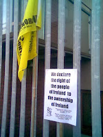First , the weather forecast : the swim was held on what was the only dry and 'gale-less' day that we have had in Dublin in about two weeks , and not only that , but a wee bit of weak sunshine managed to land on and around the swim site for the four hours that the whole event lasted for. The only dark cloud was the presence of four Special Branch detectives (three male, one female) who were a bit more intrusive than they usually are and, indeed, threatened to arrest at least one person whom they felt was not co-operating with them to their satisfaction : a few words were exchanged and that threat came to nothing.